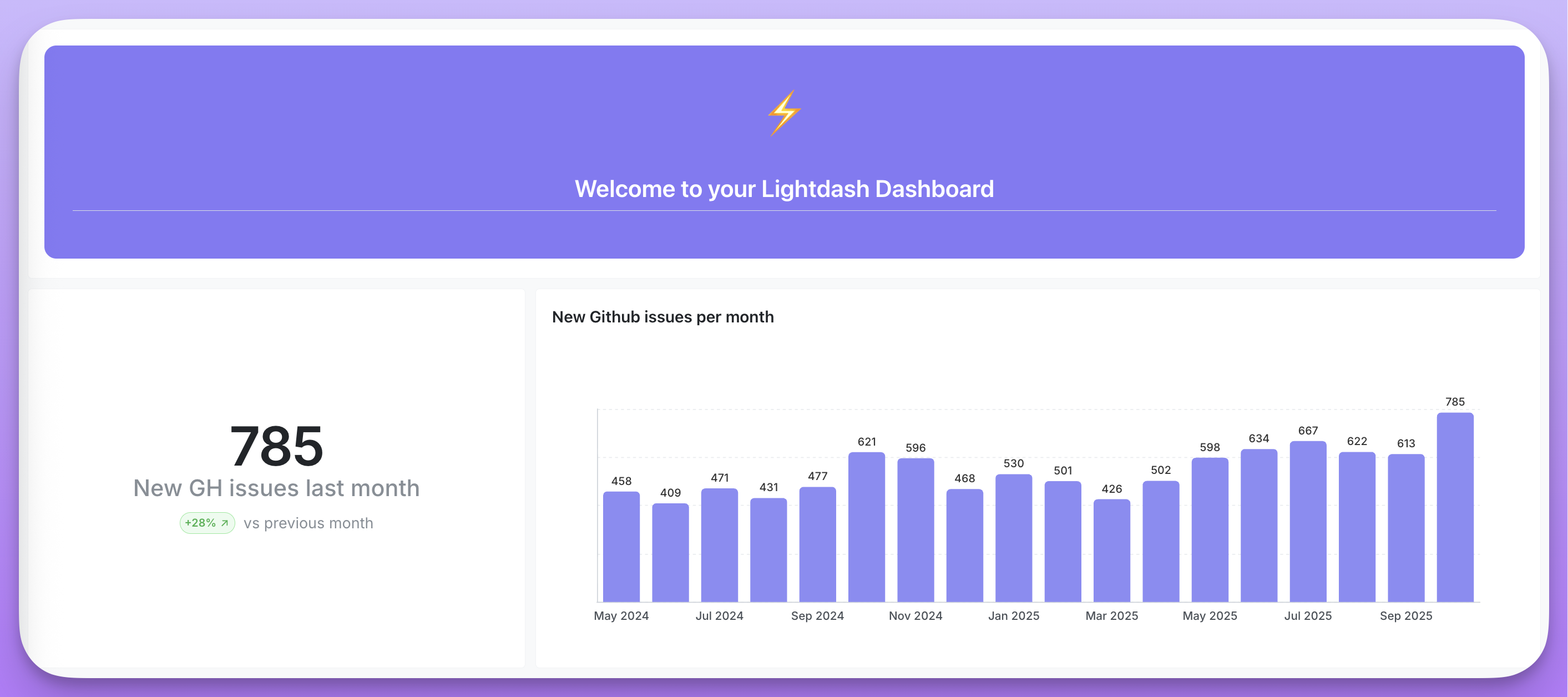 <h2 style="font-weight:600;font-size:24px">Welcome to your Lightdash Dashboard</h2>