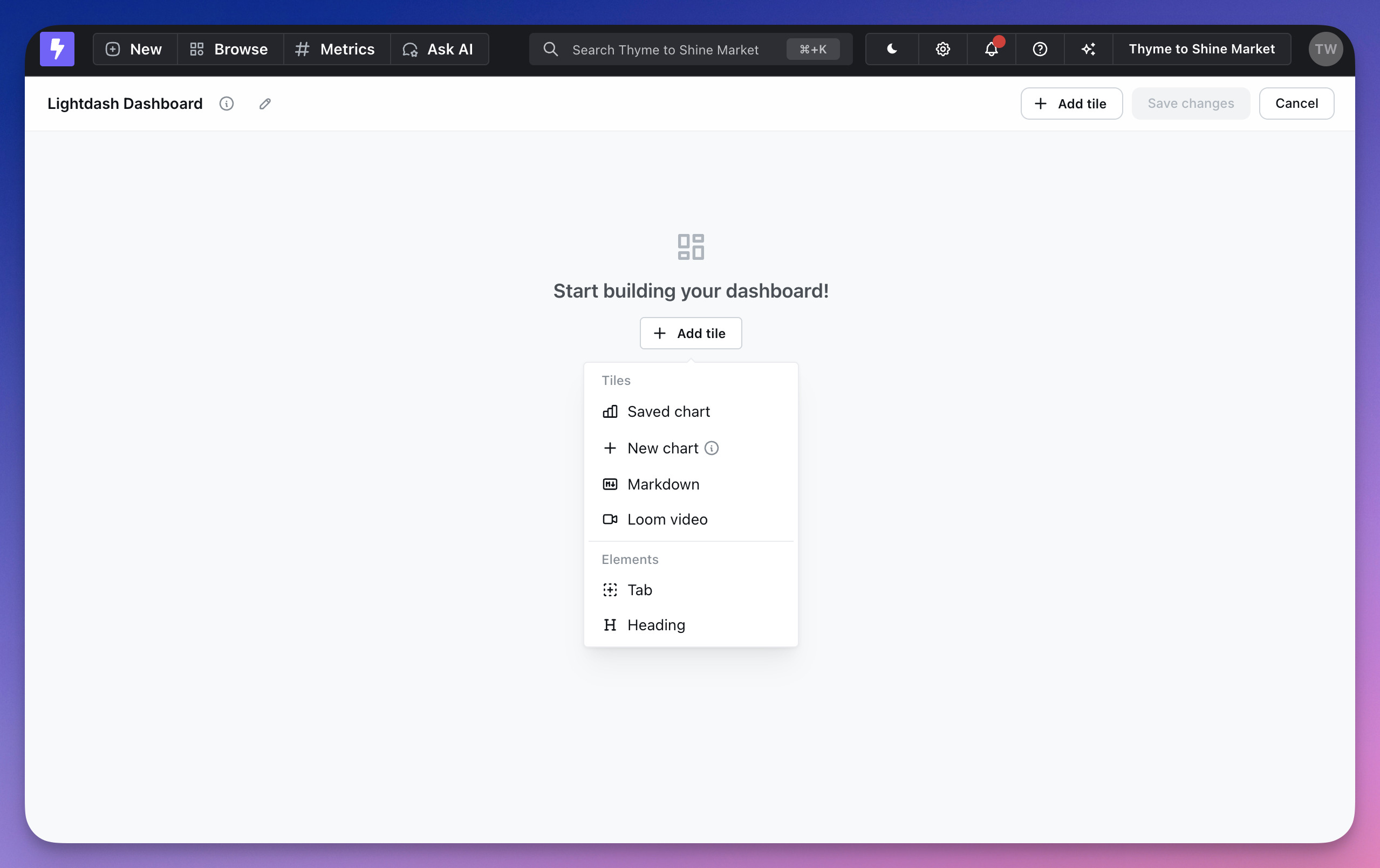 In addition to charts, you can also add markdown tiles or embedded Loom videos to explain the dashboard to people who will be using it.