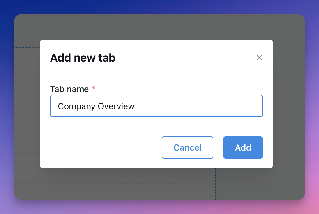 Once created, you can add content to your tab just like any other dashboard. You now have a new canvas to add content to your dashboard.